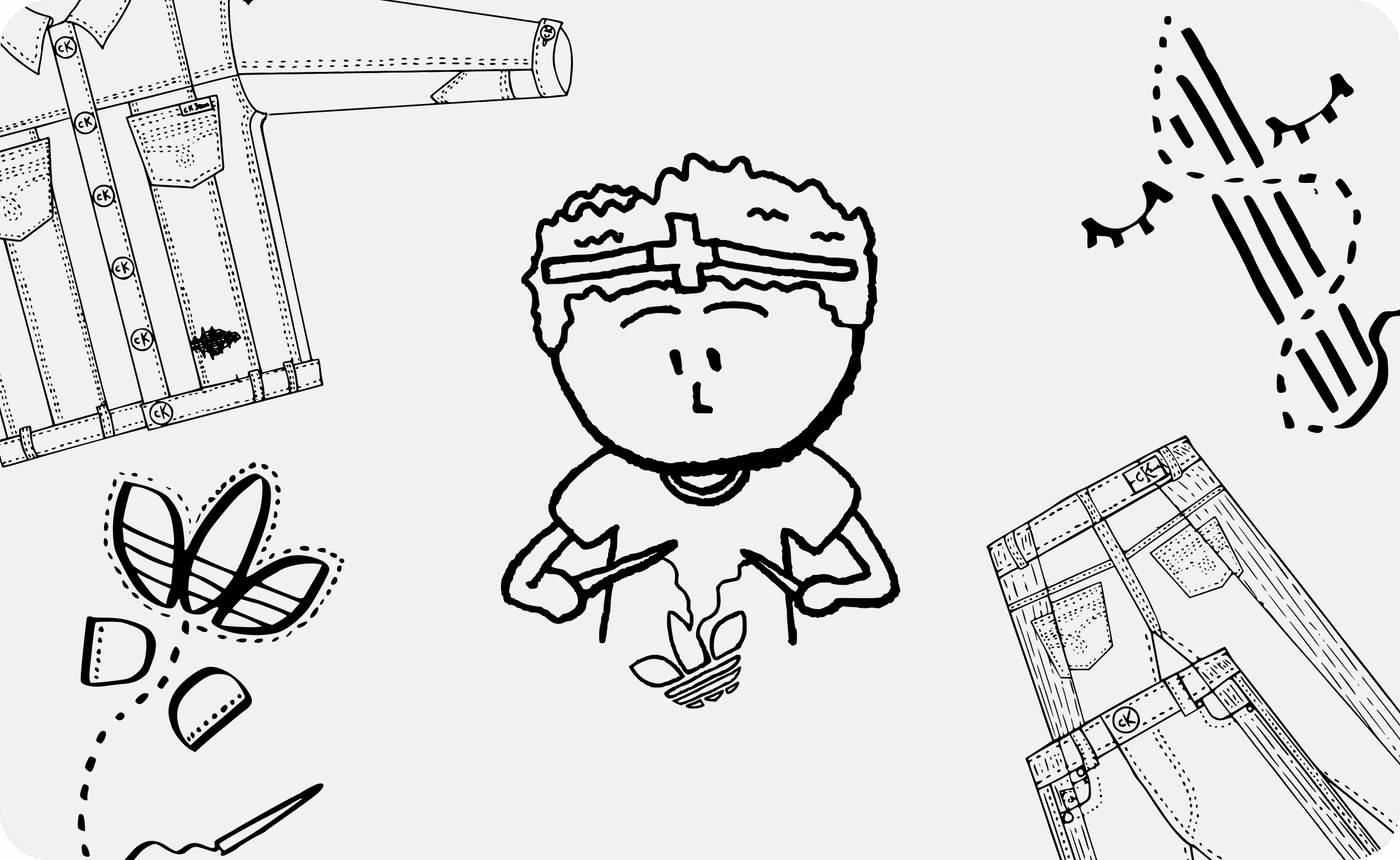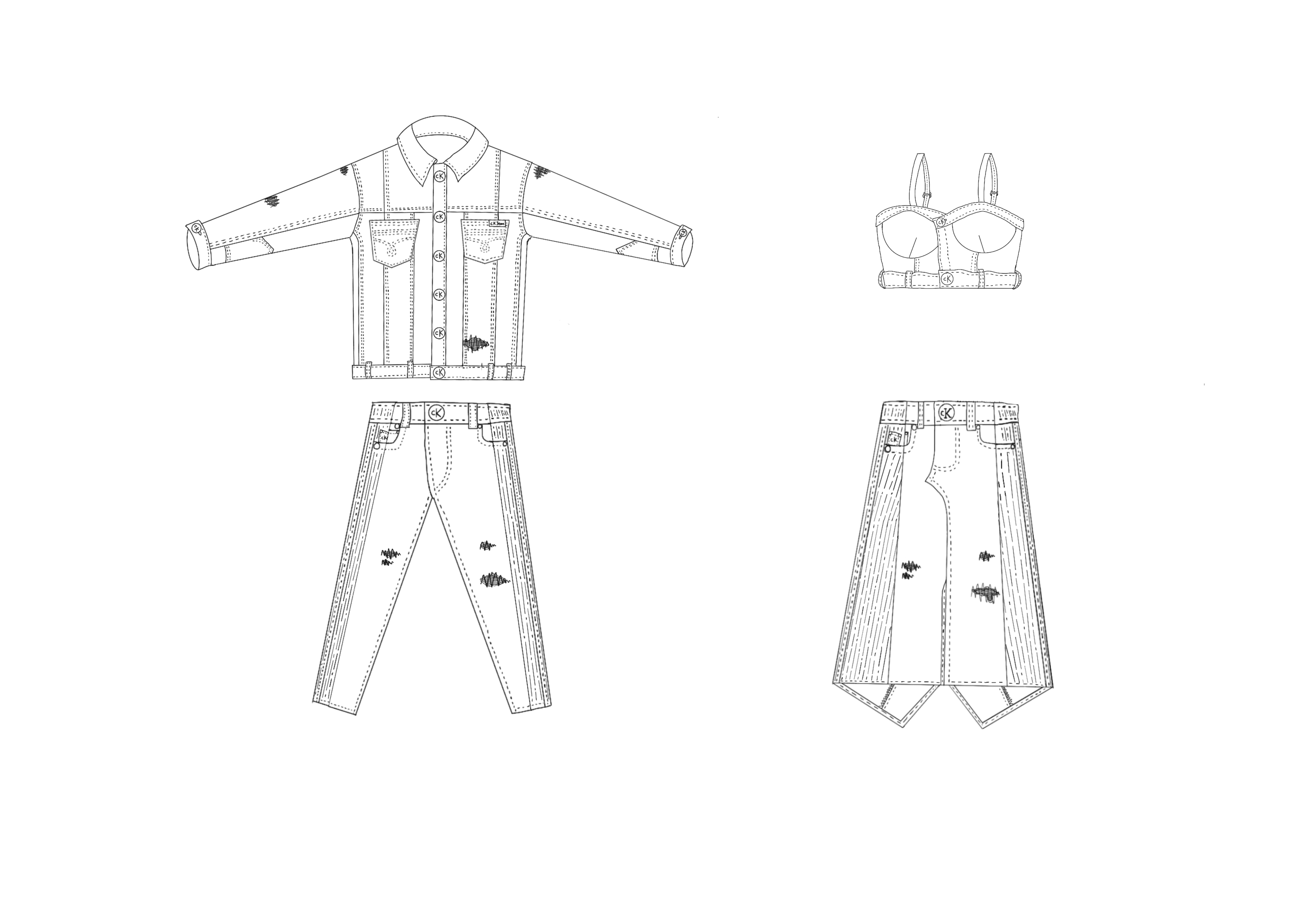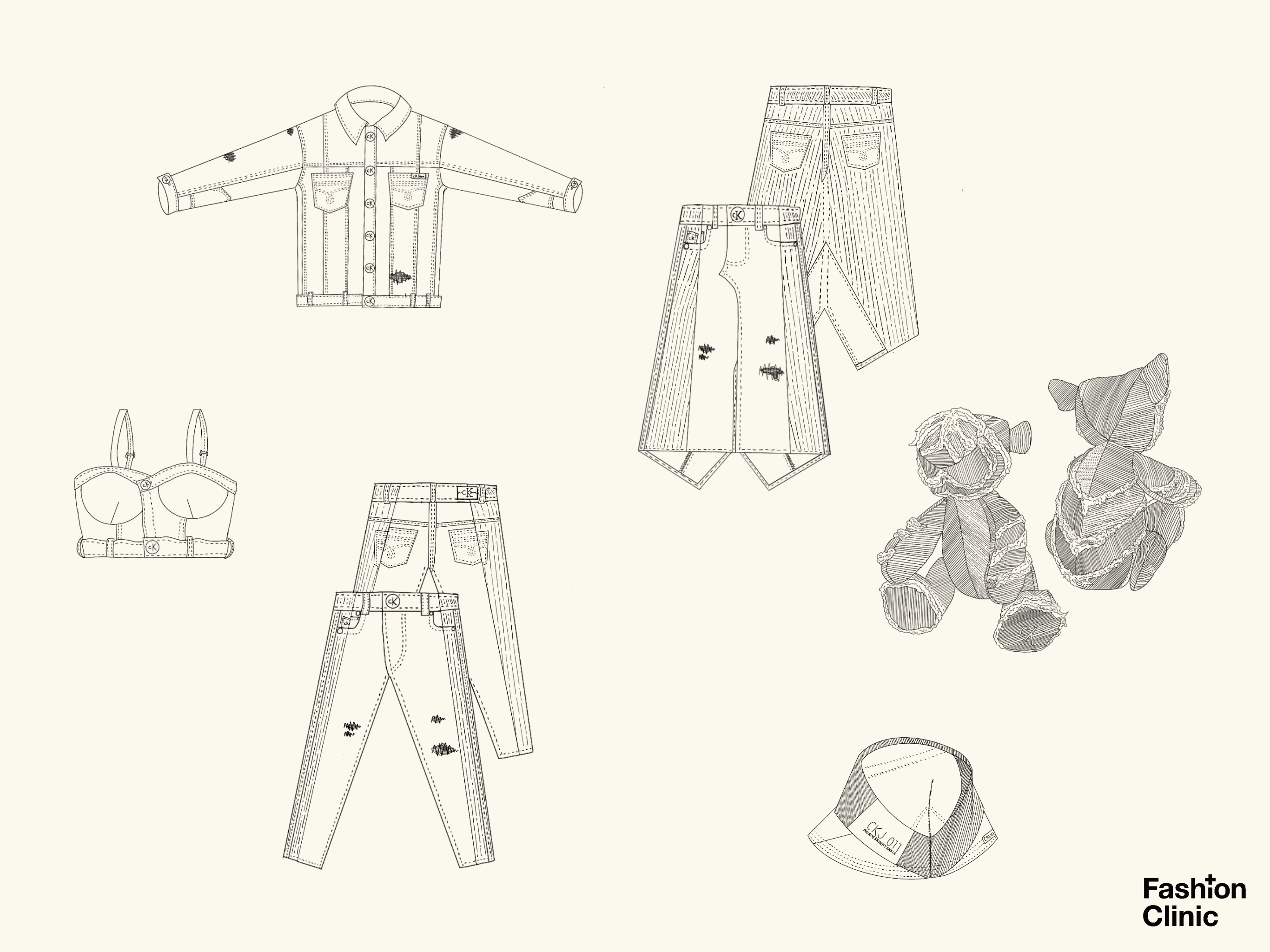 Fashion Clinic is a company specializing in redesigning and upcycling deadstock items for individuals, brands, corporations, NGOs, and theatre groups. During their with Calvin Klein’s Reimagined Denim Collection, and Adidas’s 2022 Upcycled Collection, I was the sole illustrator and designer for some of Fashion Clinics’s project’s promotional materials that was later displayed at Calvin Klein’s pop up stores and later, Adidas’s Collections.